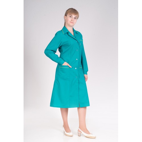 Теги: цветной халат, халат, женская спецодежда, спецодежда халат, рабочий халат