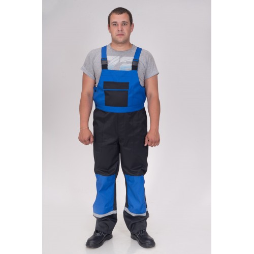 Улучшенная конструкция на основании пожеланий заказчиков. Шлейки пристегиваются фастексом. Боковая застежка, 2 боковых накладных кармана, 1 задний карман, 2 кармана для инструмента, нагрудный карман и карман для карандаша, наколенники эргономической формы.