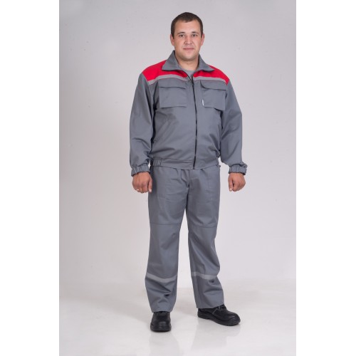 Костюм куртка+полукомбинезон. Куртка с застежкой на молнию. Два нагрудных кармана-портфеля, два прорезных кармана с застежкой на молнию. Светоотражающая лента шириной 2,5 см по краю кокетки. Полукомбинезон улучшенной конструкции на основании пожеланий заказчиков. Шлейки пристегиваются фастексом. Боковая застежка, 2 боковых накладных кармана, 1 задний карман, 1 карман для инструмента, нагрудный карман, наколенники эргономической формы.